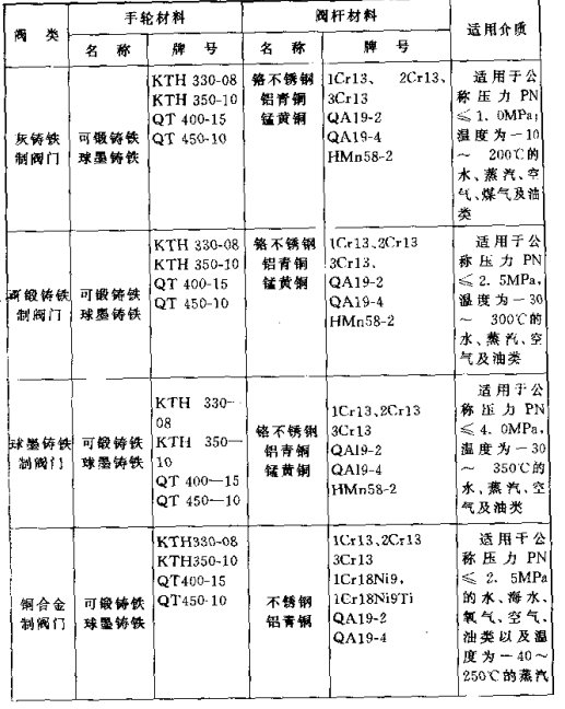 各類鑄鐵閥門(mén)部件材料及適用介質(zhì)分類圖: