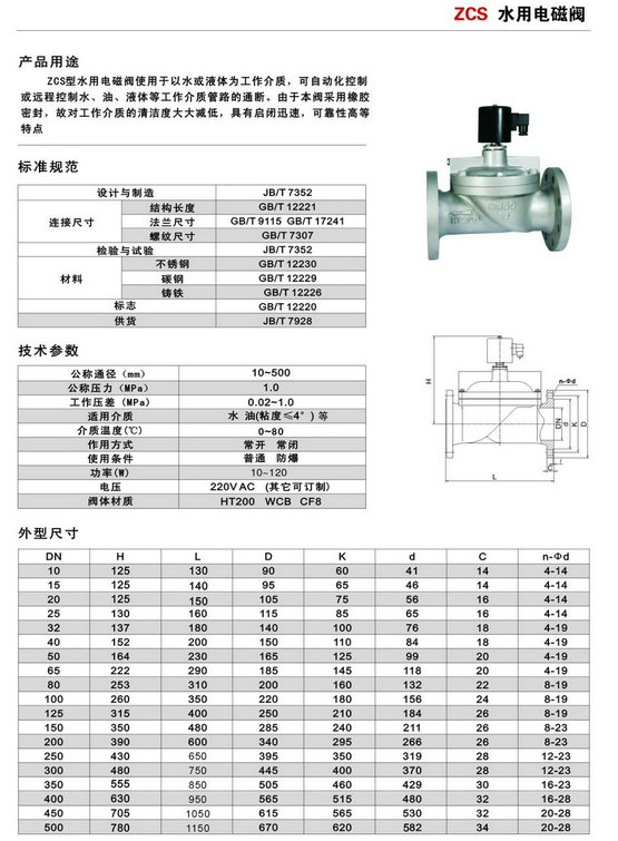 水用電磁閥,ZCS水用電磁閥技術(shù)參數(shù)