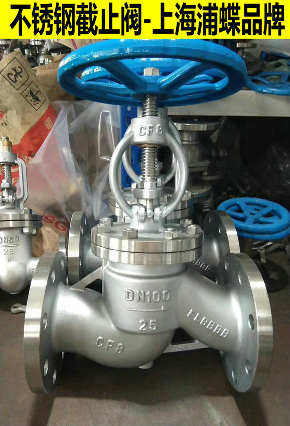 【不銹鋼法蘭截止閥】-上海浦蝶閥門有限公司 產(chǎn)品型號(hào):J41W 產(chǎn)品口徑:DN15-600 產(chǎn)品壓力:1.6~6.4MPa 產(chǎn)品材質(zhì):不銹鋼304、316L等 不銹鋼法蘭截止閥J41W-16P的啟閉件是塞形的閥瓣,密封面呈平面或錐面,閥瓣沿流體的中心線作直線運(yùn)動(dòng)。閥桿的運(yùn)動(dòng)形式,有升降桿式(閥桿升降,手輪不升降),也有升降旋轉(zhuǎn)桿式(手輪與閥桿一起旋轉(zhuǎn)升降,螺母設(shè)在閥體上)。截止閥只適用于全開和全關(guān),不允許作調(diào)節(jié)和節(jié)流。 1.【不銹鋼法蘭截止閥】性能范圍
