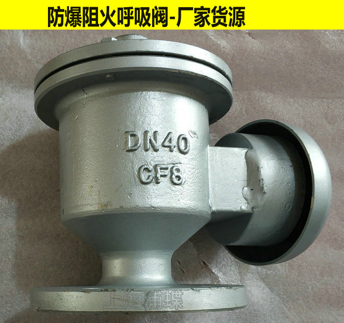儲罐阻火呼吸閥ZFQ工作原理,安裝圖片 儲罐阻火呼吸閥ZFQ產(chǎn)品配置滿足相關(guān)標(biāo)準(zhǔn)要求,耐磨性好,操作維護(hù)簡便,具有多種產(chǎn)品材質(zhì)型號可選,產(chǎn)品密封可靠,工作壓力,工作溫度,工作流量滿足各類技術(shù)要求,具體可來電聯(lián)系交流,下面是本產(chǎn)品圖文介紹: 產(chǎn)品型號:ZFQ 產(chǎn)品口徑:DN25~350 產(chǎn)品壓力:1.0~6.4Mpa 產(chǎn)品材質(zhì):鑄鋼、不銹鋼等