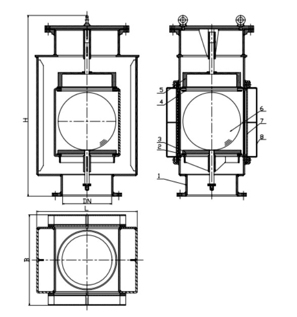 產(chǎn)品介紹:壓力真空閥通過(guò)壓力真空閥的開(kāi)啟和關(guān)閉實(shí)現(xiàn)進(jìn)氣連通和防進(jìn)水功能,實(shí)現(xiàn)壓載艙處理系統(tǒng)排氣,現(xiàn)有使用的壓力真空閥大都采用浮球方式,在正常情況下浮球處干低位。 空氣管頭無(wú)封閉,在水面上升帶動(dòng)浮球上升時(shí)浮球封閉空氣管頭。其浮球安裝結(jié)構(gòu)復(fù)雜、不便于修護(hù),且排氣、排水受限,存在使用安全隱患。 本船用壓力真空閥解決了上述隱患,主體包括閥體和浮球,其特征在于:所述閥體包括內(nèi)筒、外筒、上蓋和兩側(cè)蓋,內(nèi)筒同軸套接于外筒內(nèi)且支撐在外筒內(nèi),內(nèi)筒左右側(cè)之間鏤空呈鏤空空腔,內(nèi)筒頂端和底端分別設(shè)有連通鏤空空腔的內(nèi)筒上口和內(nèi)筒下口,浮球經(jīng)兩側(cè)蓋或防護(hù)網(wǎng)非密封蓋裝內(nèi)筒左右側(cè)封裝在鏤空空腔內(nèi),外筒頂端的外筒上口蓋裝上蓋 :所述內(nèi)筒前、后側(cè)與外筒之間形成上部連通的兩氣道,兩氣道下部連通外筒底端上的外筒下口;所述內(nèi)筒下口或外筒下口內(nèi)同軸連接下升降套,下升降桿滑動(dòng)配合穿設(shè)在下升降套內(nèi),下升降桿頂端連接設(shè)置在鏤空空腔內(nèi)對(duì)應(yīng)升降封蓋內(nèi)筒下口的下內(nèi)蓋,所述內(nèi)筒上口或外筒上口或上蓋內(nèi)端面同軸連接上升降套,上升降桿滑動(dòng)配合穿設(shè)在上升降套內(nèi),上升降桿頂端連接設(shè)置在兩氣道的上部連通處內(nèi)對(duì)應(yīng)升降封蓋內(nèi)筒上口的上內(nèi)蓋。