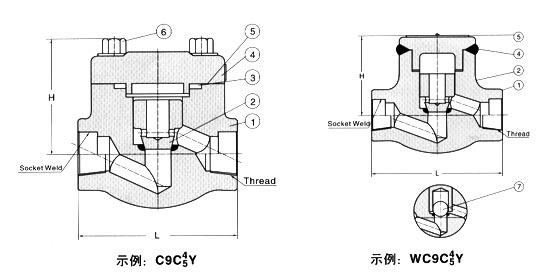 【焊接鍛鋼止回閥】-上海浦蝶閥門有限公司 焊接鍛鋼止回閥H64Y有三種閥蓋設(shè)計(jì)形式。第一種是螺栓式閥蓋,按這種設(shè)計(jì)形式設(shè)計(jì)的閥門,其閥體與閥蓋用螺栓螺母連接,纏繞式墊片(316夾柔性石墨制造)密封?蛻粲刑厥庖髸r(shí)也可采用金屬環(huán)連接。第二種設(shè)計(jì)形式是焊接式閥蓋,按這種設(shè)計(jì)形式的閥門,其閥體與閥蓋用螺紋連接,全焊密封?蛻粲刑厥庖髸r(shí)也可采用全焊透連接。第三種是壓力自緊式閥蓋,按這種設(shè)計(jì)形式設(shè)計(jì)的閥門,其閥體與閥蓋用螺紋連接,內(nèi)壓自密封環(huán)密封。 止回閥存在三種不同的設(shè)計(jì)結(jié)構(gòu),它們是升降式止回閥、球式止回閥和旋啟式止回閥。 1.【焊接鍛鋼止回閥】設(shè)計(jì)結(jié)構(gòu)和特征 止回閥的設(shè)計(jì)與制造符合MSSP-118和ASME B16.34。檢驗(yàn)與測(cè)試按API 598,標(biāo)記按MSS-SP-25。 2.【焊接鍛鋼止回閥】結(jié)構(gòu) 全徑或縮徑 升降式止回閥 球式止回閥 旋啟式止回閥 按需求內(nèi)置彈簧 螺栓連接、纏繞墊片密封式閥蓋;螺紋連接、全焊密封式閥蓋以及螺紋連接內(nèi)壓自緊式閥蓋 整體式上密封座 承插端符合ASME B16.11 螺紋連接端(NPT)符合ANSI/ASME B1.20.1 閥瓣可變換為節(jié)流型、針型、球型 【焊接鍛鋼止回閥】 4.【焊接鍛鋼止回閥】標(biāo)準(zhǔn)材質(zhì)明細(xì)表 序號(hào) | 零件名稱 | CS to ASTM | AS to ASTM | SS to ASTM | Type A105N | Type F22 | Type F304(L) | Type F316(L) | 1 | 閥體 | A105N | A182 F22 | A182 F304(L) | A182 F316(L) | 2 | 升降式 閥瓣 | A276 420 | A276 304 | A276 304(L) | A276 316(L) | 3 | 墊片 | 316夾 柔性石墨 | 316夾PTFE | 4 | 閥蓋 | A105N | A182 F22 | A182 F304(L) | A182 F316(L) | 5 | 銘牌 | SS | 6 | 螺栓 | A193 B7 | A193 B16 | A193 B8(M) | A193 B8(M) | 7 | 球 | A182 F420/STL | A182 F304 | A182 F304 | A182 F304 | 適用介質(zhì) | 水、蒸汽、油品等 | 水、蒸氣、油品等 | 硝酸、醋酸等 | 適用溫度 | -29°C~425°C | -29°C~550°C | -29°C~200°C |