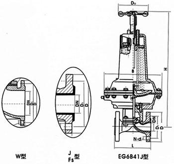 2.【常閉式氣動隔膜閥EG6B41J-10】尺寸表 型號 | 公稱通徑 DN(mm) | 尺寸(mm) | 氣動裝置 | 質(zhì)量 (㎏) | L | f | D1 | D | D0 | n-d | H | B | 代號 ES | 耗氣量(cm3) | 氣源壓力(MPa) | 氣源接頭(in) | J型 | W型 | EG6B41WJFS-16 | 20 | 121 | 117 | 2 | 75 | 105 | 120 | 4-13.5 | | 168 | 61 | 163.87 | 0.3 | 1/8 | 7.2 | 25 | 131 | 127 | 2 | 85 | 115 | 120 | 4-13.5 | 394 | 168 | 61 | 196.65 | 0.3-0.4 | 1/8 | 8.9 | 32 | 150 | 146 | 2 | 100 | 140 | 120 | 4-17.5 | 400 | 168 | 61 | 229.4 | 0.3-0.4 | 1/8 | 10.6 | 40 | 163 | 159 | 2 | 110 | 150 | 165 | 4-17.5 | 485 | 260 | 62 | 1425.7 | 0.3-0.4 | 1/4 | 19.5 | 50 | 194 | 190 | 2 | 125 | 165 | 165 | 4-17.5 | 635 | 318 | 63 | 2284.1 | 0.3-0.4 | 1/4 | 34.9 | EG6B41WJFS-10 | 65 | 220 | 216 | 2 | 145 | 185 | 165 | 4-17.5 | 650 | 318 | 63 | 3048 | 0.3-0.4 | 1/4 | 39.9 | 80 | 258 | 254 | 2 | 160 | 200 | 165 | 8-17.5 | 660 | 318 | 63 | 3244.7 | 0.4-0.5 | 1/4 | 51.9 | 100 | 309 | 305 | 2 | 180 | 220 | 280 | 8-17.5 | 816 | 425 | 64 | 6964.5 | 0.4-0.5 | 3/8 | 93.2 | 125 | 362 | 356 | 3 | 210 | 250 | 280 | 8-17.5 | 825 | 425 | 64 | 7439.7 | 0.4-0.5 | 3/8 | 105.3 | 150 | 412 | 406 | 3 | 240 | 285 | 310 | 8-22 | 1013 | 549 | 65 | 14912 | 0.5 | 3/8 | 184.5 | EG6B41WJFS-6 | 200 | 529 | 521 | 4 | 295 | 340 | 483 | 8-22 | 1300 | 749 | 66 | 49161 | 0.5 | 1/2 | 407.4 |