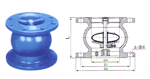 【SCKV緩沖塞閥】-上海浦蝶閥門有限公司 1.概述 SCKV系列緩沖塞閥與排氣閥配套使用,SCKV緩沖塞閥安裝在排氣閥進(jìn)口處,用在管線送水時(shí)產(chǎn)生的突壓及大量沖擊上,防止排氣時(shí)的大量噴水及有效減緩對(duì)于排氣閥內(nèi)部的沖擊,以延長(zhǎng)排氣閥的壽命,具有緩沖功能而不影響排氣和吸氣等特點(diǎn)。特別適用于對(duì)水泵啟動(dòng)頻繁的情況,與排氣閥一起配套使用。 2.SCKV緩沖塞閥技術(shù)參數(shù) ◆工作壓力:1.0Mpa ◆介質(zhì):清水 ◆使用溫度:≤80℃ ◆閥體材質(zhì):HT200 ◆閥桿:304不銹鋼 ◆浮桶:304不銹鋼 ◆浮桶支架:球墨鑄鐵 3.【SCKV系列緩沖塞閥】外形尺寸 公稱通徑 DN(mm) | PN(Mpa) | D1 | D2 | L | Z-∮19 | 50 | 1.0 | 125 | 160 | 140 | 4-19 | 1.6 | 125 | 160 | 4-19 | 80 | 1.0 | 160 | 195 | 160 | 8-19 | 1.6 | 160 | 195 | 8-19 | 100 | 1.0 | 180 | 215 | 200 | 8-19 | 1.6 | 180 | 215 | 8-19 | 150 | 1.0 | 240 | 280 | 260 | 8-23 | 1.6 | 240 | 280 | 8-23 | 200 | 1.0 | 295 | 335 | 300 | 8-23 | 1.6 | 295 | 335 | 12-23 | 250 | 1.0 | 350 | 390 | 350 | 12-23 | 1.6 | 355 | 390 | 12-28 | 300 | 1.0 | 400 | 440 | 370 | 12-23 | 1.6 | 410 | 460 | 12-28 | 350 | 1.0 | 515 | 565 | 500 | 12-28 | 1.6 | - | 580 | 16-31 | 4.【SCKV系列緩沖塞閥】安裝示意圖
