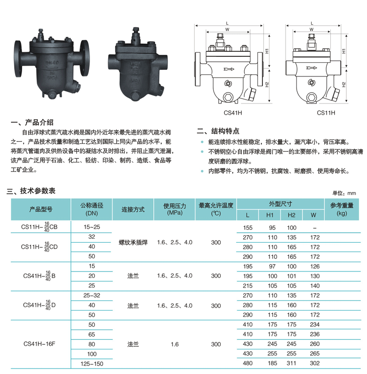 【自由浮球式疏水閥】CS11H,CS41H-上海浦蝶閥門有限公司