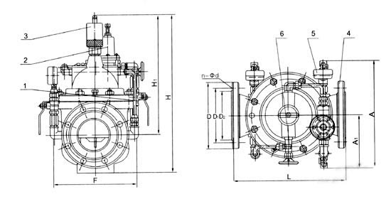 當(dāng)閥門從進(jìn)口端給水時(shí),水流過(guò)針閥進(jìn)入主閥控制室,并經(jīng)過(guò)導(dǎo)閥、球閥流出主閥控制室到出口,此時(shí)主閥處于全開或浮動(dòng)狀態(tài)。調(diào)定主閥上部的流量調(diào)節(jié)閥,可為主閥設(shè)定一定開度。調(diào)節(jié)針閥開度和調(diào)節(jié)導(dǎo)閥彈簧壓力,即可使主閥開度保持在設(shè)定開度,并在壓力變化時(shí)導(dǎo)閥進(jìn)行自動(dòng)調(diào)節(jié),保持流量不變。 |
