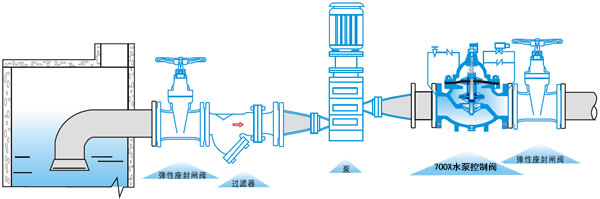 【700X多功能水泵控制閥】-上海浦蝶閥門有限公司 產(chǎn)品型號:700X 產(chǎn)品口徑:DN20~DN800 產(chǎn)品壓力:1.0~2.5MPa 產(chǎn)品材質(zhì):鑄鐵、鑄鋼等 【700X多功能水泵控制閥】由主閥、電磁導(dǎo)閥、針閥、球閥、單向閥、行程開關(guān)、微形過濾器和壓力表組成水力控制接管系統(tǒng)。水泵需停止工作時,先由進口壓使主閥關(guān)閉90%后,水泵停止運轉(zhuǎn)。剩余10%由回水關(guān)閉?煞乐顾N現(xiàn)象發(fā)生。 本產(chǎn)品利用電磁導(dǎo)閥控制,不需要其它裝置和能源。節(jié)約能源,保養(yǎng)簡便,停泵平穩(wěn)。電磁閥可采用交流電220V或直流電24V。 本系列閥門產(chǎn)品廣泛用于高層建筑、生活區(qū)等供水管網(wǎng)系統(tǒng)及城市供水工程。