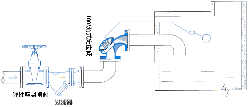 【角型定水位閥100A】-上海浦蝶閥門有限公司 產(chǎn)品型號:100A 產(chǎn)品口徑:DN50-300 產(chǎn)品壓力:0.6-1.6Mpa 產(chǎn)品材質(zhì):鑄鐵、鑄鋼等 1.【角型定水位閥100A】簡介 本閥門是一種隔膜式調(diào)節(jié)水箱和水塔液面高度的閥門。閥門由一特殊強(qiáng)化尼龍膜片將其分為上下兩個(gè)空室,當(dāng)液面達(dá)到設(shè)定位置時(shí),浮球?qū)чy關(guān)閉,上腔壓力大于下腔,閥門關(guān)閉,即停止供水;當(dāng)液面下降超過預(yù)設(shè)位置,浮球?qū)чy開啟,上腔壓力小于下腔壓力,閥門開啟,閥門向池內(nèi)供水。角型定水位閥安裝方便,可省去管道彎頭,節(jié)省安裝空間。該閥保養(yǎng)簡單、靈活耐用、液位控制準(zhǔn)確度高,水位不受水壓干擾且關(guān)閉緊密不漏水,性能可靠,成本底。浮球可隨水池的高度和距度安裝。 2.【角型定水位閥100A】說明 角型定水位閥主要由一角型隔膜式主閥,內(nèi)部含一片特殊強(qiáng)化尼龍膜片及一只彈簧,并經(jīng)由主閥外部一組控制浮球閥啟閉主閥。當(dāng)水池水位達(dá)到滿水位時(shí),控制浮球閥會(huì)先行關(guān)閉后再傳訊關(guān)閉主閥。當(dāng)水池水位下降約10公分后控制浮球閥再行開啟,并使主閥重新開啟大量補(bǔ)充進(jìn)水。 3.【角型定水位閥100A】主要規(guī)格 閥門尺寸:DN15-DN150 壓力等級:PN6 最高工作壓力: 0.6MPa 閥座試驗(yàn)壓力: 0.66MPa 閥體試驗(yàn)壓力: 1.5MPa 4.【角型定水位閥100A】安裝示意圖  5.【角型定水位閥100A】結(jié)構(gòu)示意圖