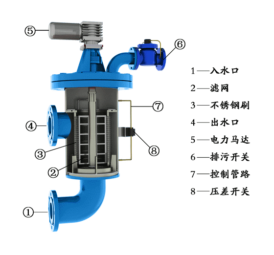 3.【全自動(dòng)反沖洗排污過(guò)濾器】結(jié)構(gòu)示意圖: