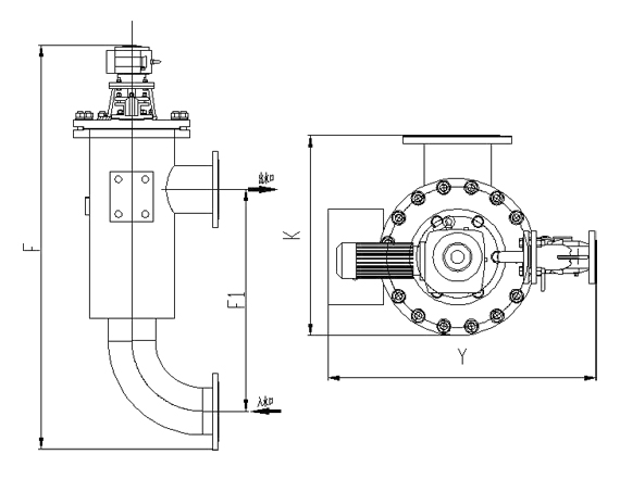 型號(hào) | 管徑 | 出入水口 | F | F1 | Y | K | 濾網(wǎng)面積 | 處理水量 | 重量 | inch | mm | mm | mm | mm | mm | cm2 | m3/h | Kg | CNAF-FT03 | 3 | 80 | 1120 | 510 | 683 | 673 | 1165 | 45 | 87 | CNAF-FT04 | 4 | 100 | 1218 | 583 | 683 | 673 | 1367 | 65 | 106 | CNAF-FT05 | 5 | 125 | 1353 | 671 | 683 | 673 | 2095 | 105 | 132 | CNAF-FT06 | 6 | 150 | 1506 | 776 | 744 | 725 | 3014 | 150 | 197 | CNAF-FT08 | 8 | 200 | 1817 | 934 | 820 | 777 | 5270 | 265 | 248 | CNAF-FT10 | 10 | 250 | 2160 | 1126 | 874 | 826 | 7867 | 410 | 360 | CNAF-FT12 | 12 | 300 | 2370 | 1269 | 939 | 908 | 11414 | 590 | 486 | CNAF-FT14 | 14 | 350 | 2720 | 1471 | 1026 | 1010 | 15552 | 800 | 653 | CNAF-FT16 | 16 | 400 | 3076 | 1665 | 1098 | 1111 | 20344 | 1050 | 765 | CNAF-FT18 | 18 | 450 | 3433 | 1869 | 1199 | 1213 | 25751 | 1320 | 814 | CNAF-FT20 | 20 | 500 | 3807 | 2077 | 1288 | 1250 | 31786 | 1630 | 920 |