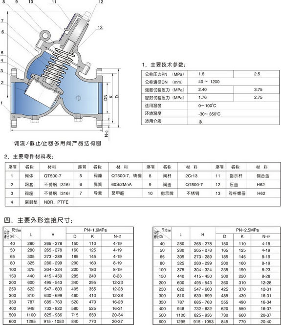 多功能止回閥,三合一多功能止回閥參數(shù)尺寸圖: