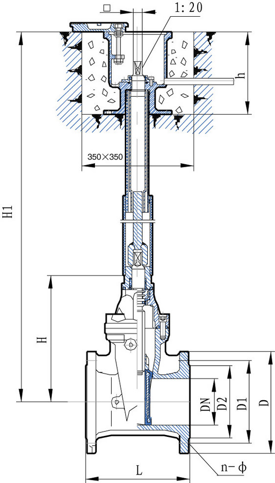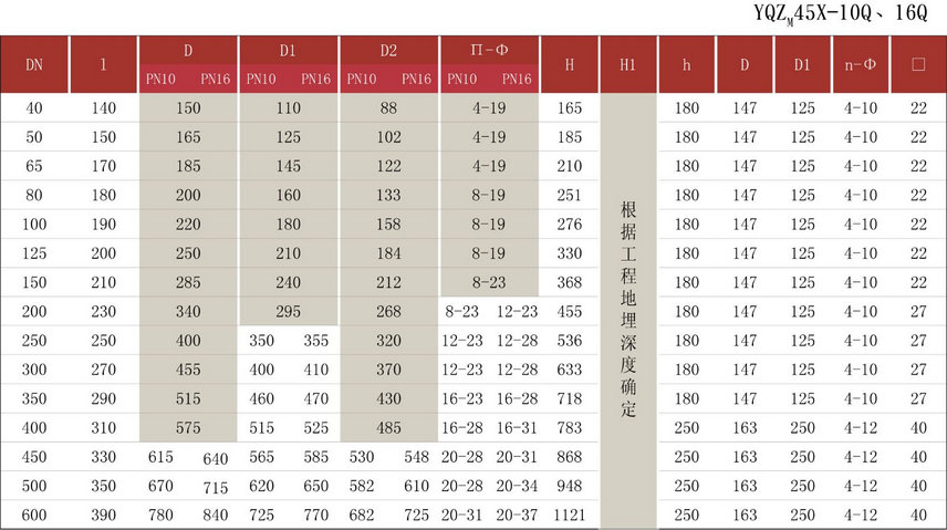 埋地式閘閥,埋地式加長(zhǎng)桿閘閥技術(shù)參數(shù)尺寸圖: