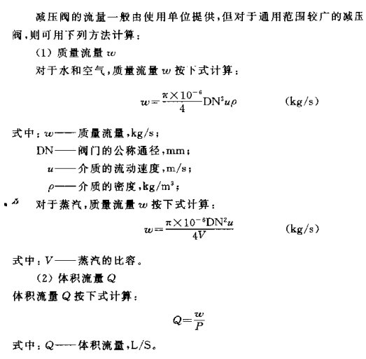 減壓閥的流量是應(yīng)用中重要的技術(shù)參數(shù),依據(jù)減壓原理,大多數(shù)減壓閥在正常工作后,減壓的同時(shí)也會(huì)減流量。而最終流量的大小是否符合使用需求是用戶關(guān)心的問題之一。通過減壓閥使用的介質(zhì)場合、閥門口徑、介質(zhì)流動(dòng)速度、介質(zhì)密度比容等參數(shù),是可以計(jì)算出減壓閥減壓后的大致流量的,計(jì)算公式如下: